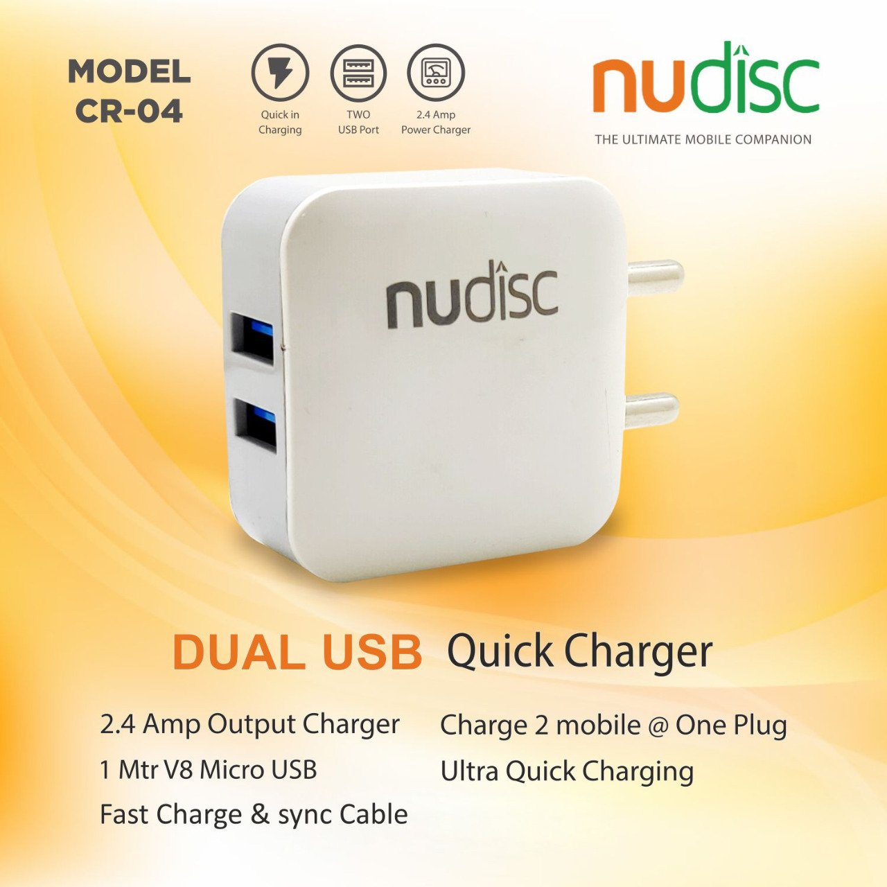 Dual USB Fast Charging Adapter with Data Cable| Data transfer with PCs and laptops| 2.4 Amps