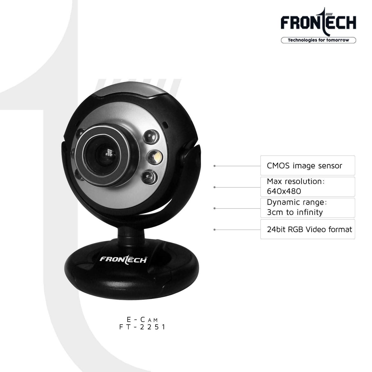 Frontech FT-2251 Web-Cam with Night Vision| CMOS image sensor| 24bit RGB| Black